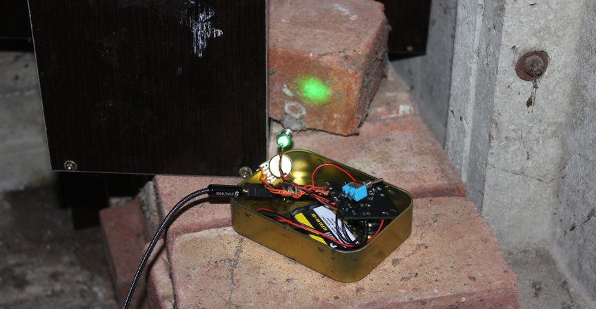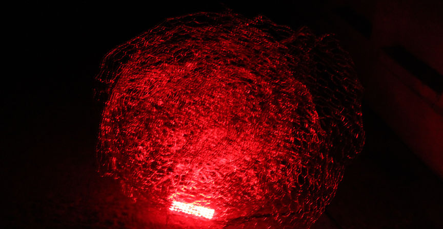 As the concept revolves around disruption, I wanted to introduce a chaotic lighting element into the space. I had an LED strobe light that originally came with an inbuilt microphone that allowed the lights to react to sound. I decided to remove the condenser microphone it came with and replace it with a contact microphone. The idea behind this was that as people came in to see and experience the installations, the contact microphone would pick up the movements and vibrations through the floor. I decided to turn this feature off due to the distinct lack of foot-traffic in my gallery…